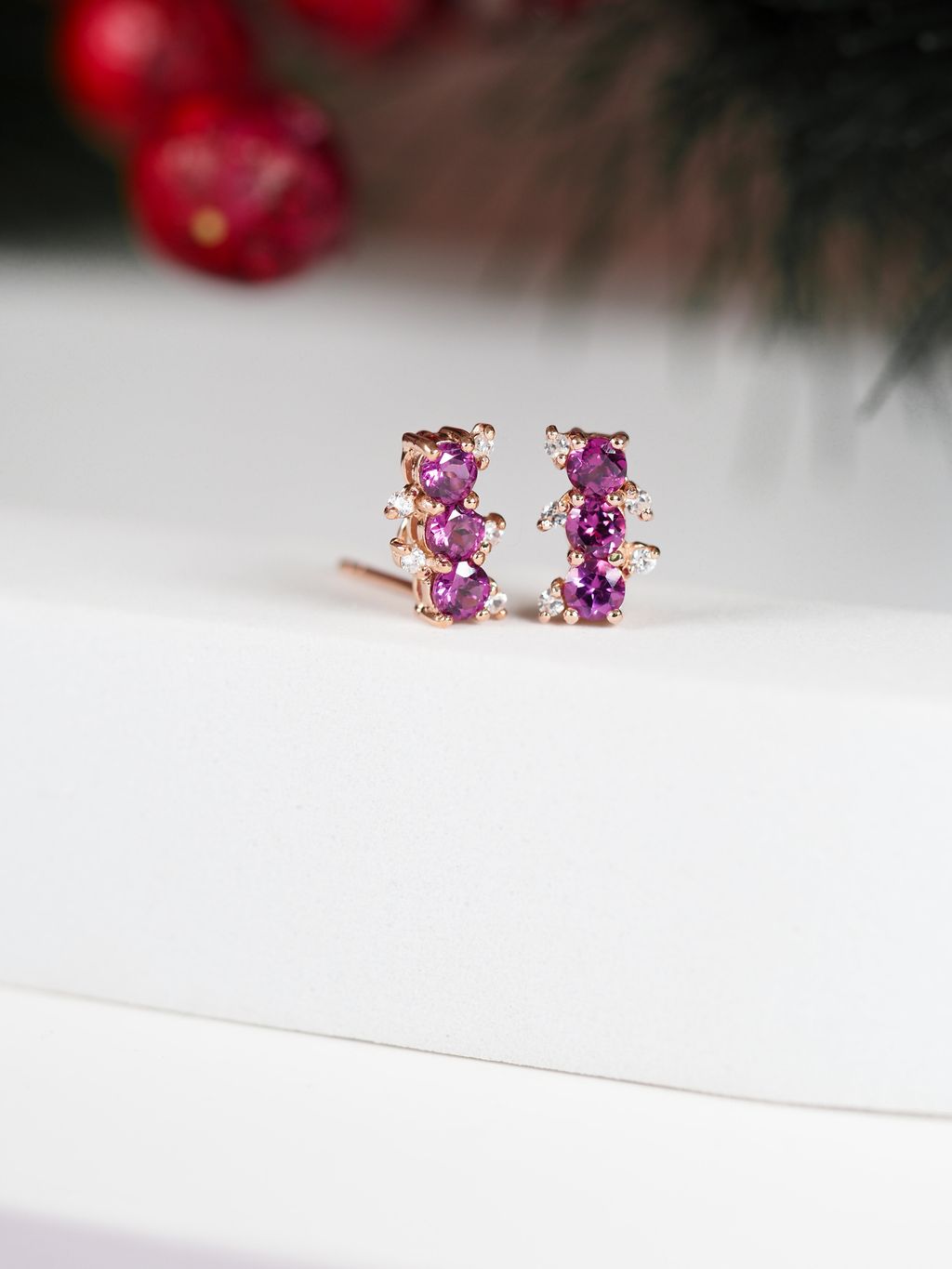 ต่างหูพลอยสีสวยดูละมุน ประดับด้วยเพทายเม็ดเล็กๆ ขนาดน่ารักเหมาะสำหรับใส่ติดหู จากคอลเลคชั่น Mon ออกแบบโดย Axora Jewellery
